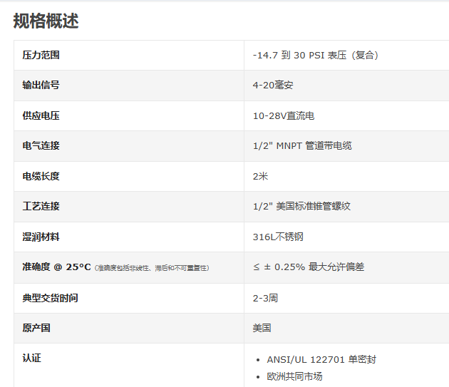 > CORE SENSORS 压力变送器